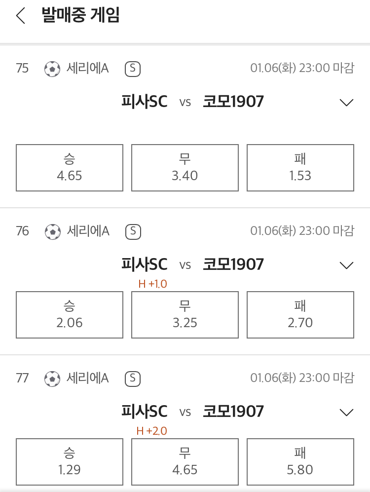 배당 역시 코모 승이 1.53으로 강하게 형성되어 시장 신뢰가 뚜렷하며, 이는 원정임에도 불구하고 전력 차이를 명확히 반영한 수치로 해석됩니다. 다만 핸디캡 +1.0에서 피사 쪽 배당이 낮아지는 흐름은 코모의 대승보다는 실리적인 운영 가능성을 시사합니다.