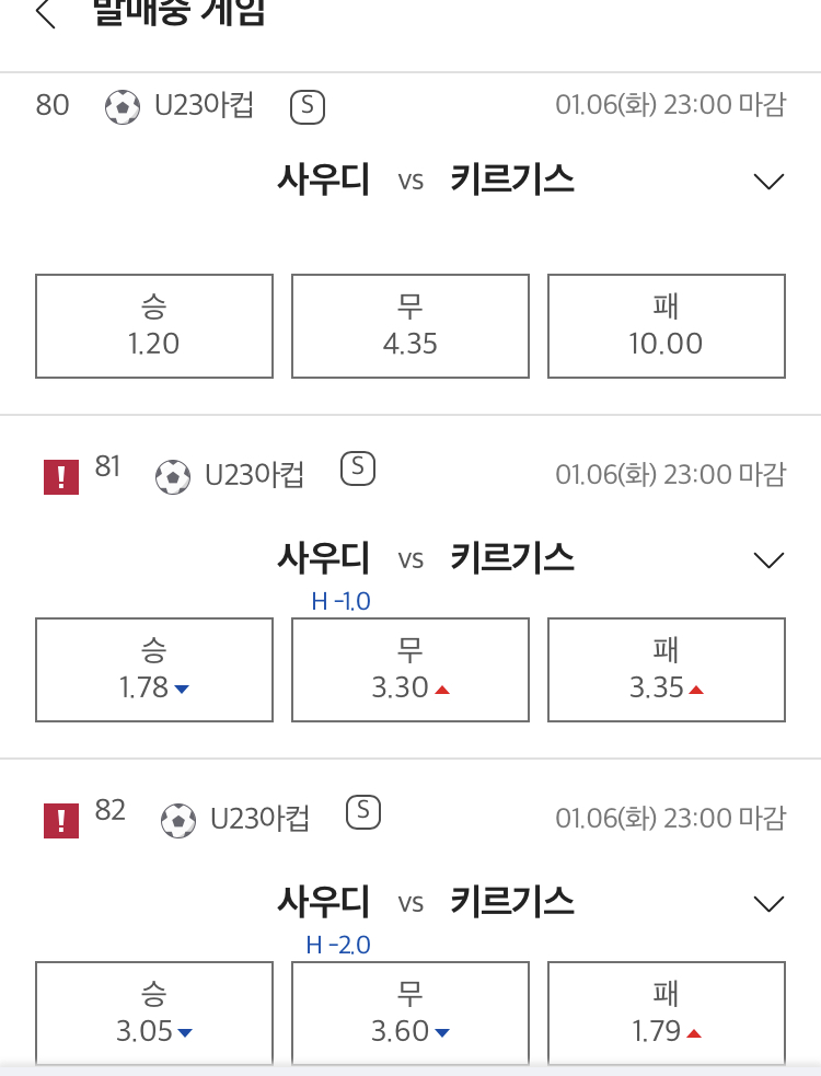 일반 승 배당이 1.20까지 내려온 점은 이변 가능성을 거의 배제한 시장 평가이며, -1.0 핸디캡 배당 하락 역시 사우디의 안정적인 다득점 가능성을 반영합니다. 다만 -2.0 이상에서는 배당이 갈리는 만큼 대승 여부보다는 2~3골 차 승리가 가장 현실적인 그림입니다. 경기 흐름은 사우디가 초반부터 점유율을 장악하고 지속적으로 박스 근처를 두드리는 일방적인 전개가 예상됩니다.