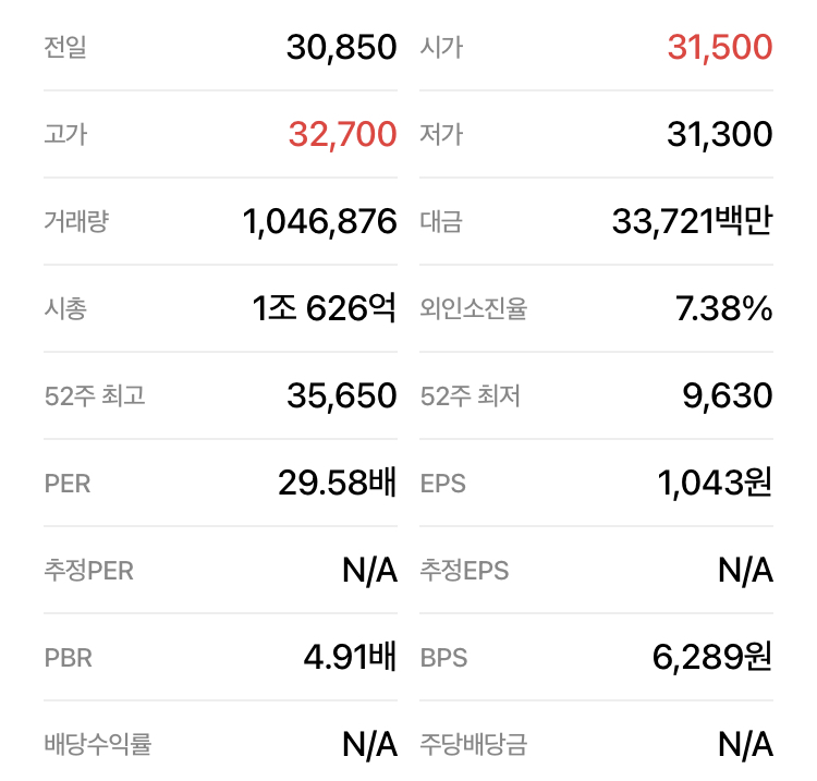단기 변동성 확대: 52주 최고 35,100원, 최저 9,530원까지 크게 움직인 종목이므로 어제의 강세는 변동성 확대 속의 반등 흐름으로 볼 수 있습니다.
