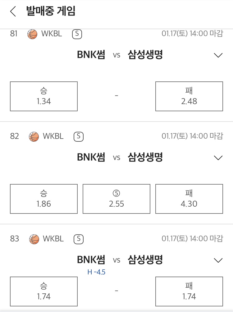 BNK썸 -4.5 핸디승