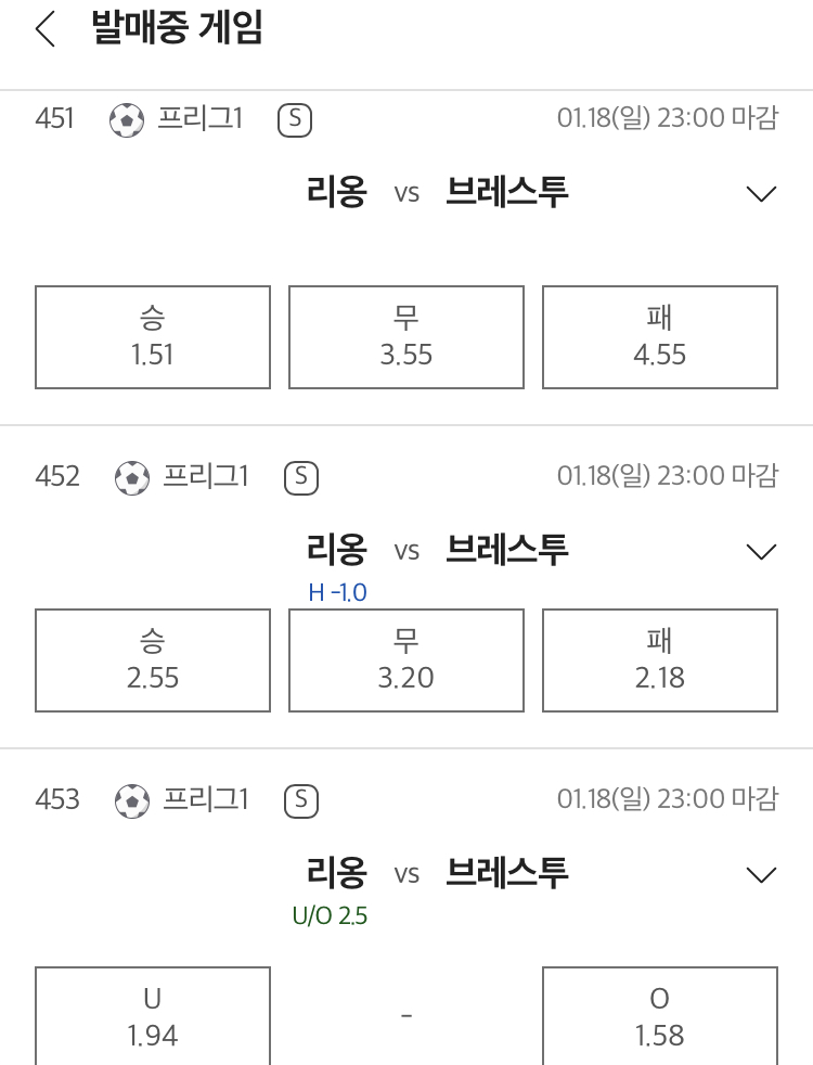 배당을 보면 리옹 승 배당 1.51로 홈 우세가 명확히 반영되어 있습니다. 그러나 -1.0 핸디캡에서 패 배당이 더 낮게 형성된 점은 리옹이 한 골 차 승리에 그칠 가능성도 상당하다는 의미입니다. 언더오버 2.5에서 오버 배당이 낮은 것은 득점이 비교적 많이 나올 수 있는 경기로 시장이 보고 있음을 보여줍니다.