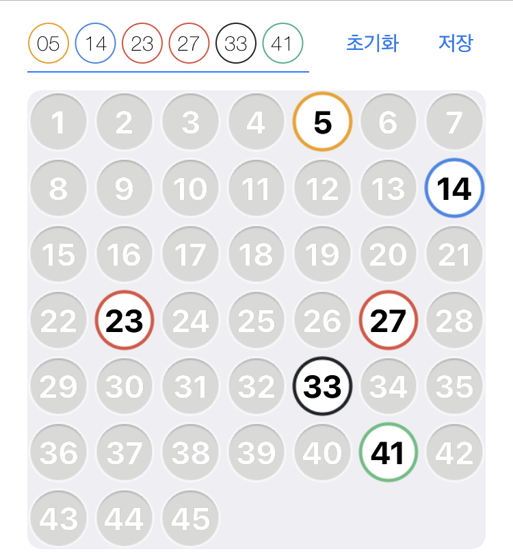 5번, 14번, 23번, 27번, 33번, 41번으로 구성하였습니다.