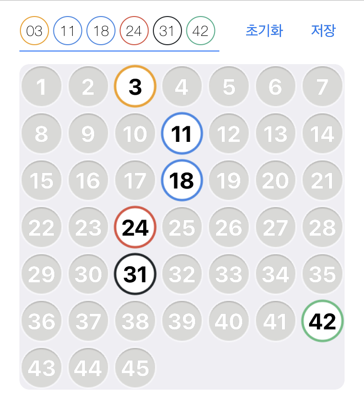 저번대에서 3번을 사용해 초반 흐름을 잡고, 10번대와 20번대에서 각각 하나씩 안정 번호를 배치하였습니다. 30번대는 31번으로 초반대만 가져가 과열을 피하였고, 40번대는 42번 하나만 사용해 고번 부담을 최소화한 조합입니다. 전체 합계와 홀짝, 고저 균형이 가장 무난한 안정형 조합입니다.