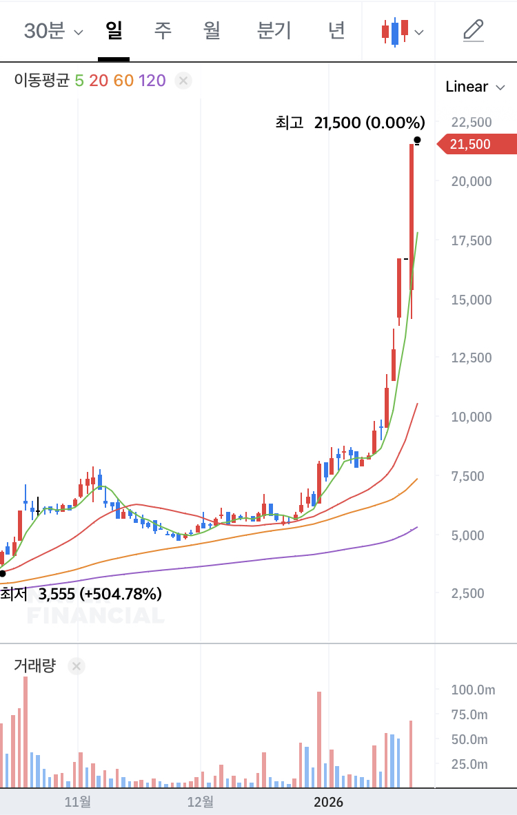 휴림로봇 주가는 최근 극심한 변동성을 보이며 시장에서 큰 주목을 받고 있습니다. 지난 거래일 종가는 21,500원 수준으로 확인되며 52주 신고가권에서 거래되고 있습니다. 이는 작년 대비 약 10배 가까운 급등 흐름을 보여주는 이례적 움직임입니다.