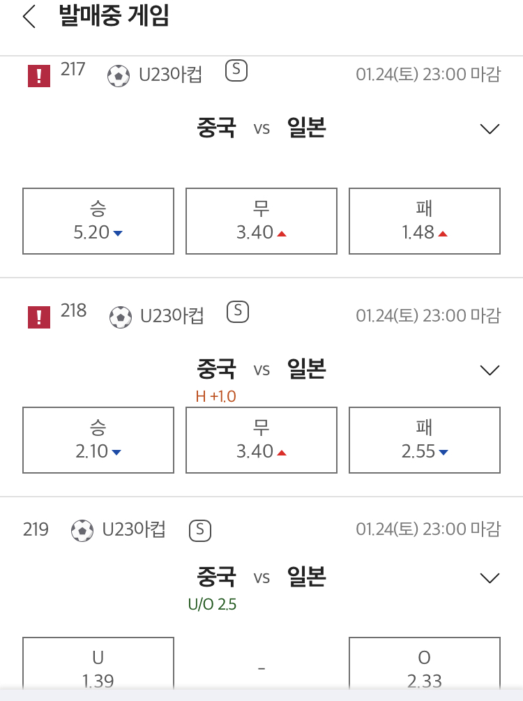 중국 U23 vs 일본 U23