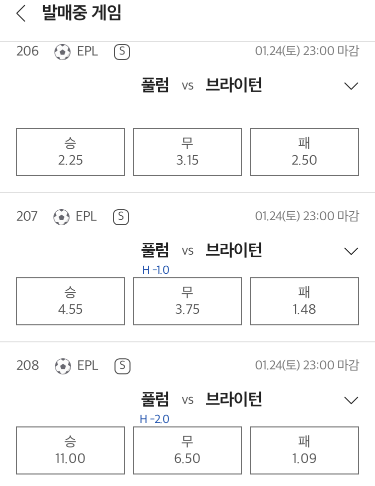 풀럼 vs 브라이턴