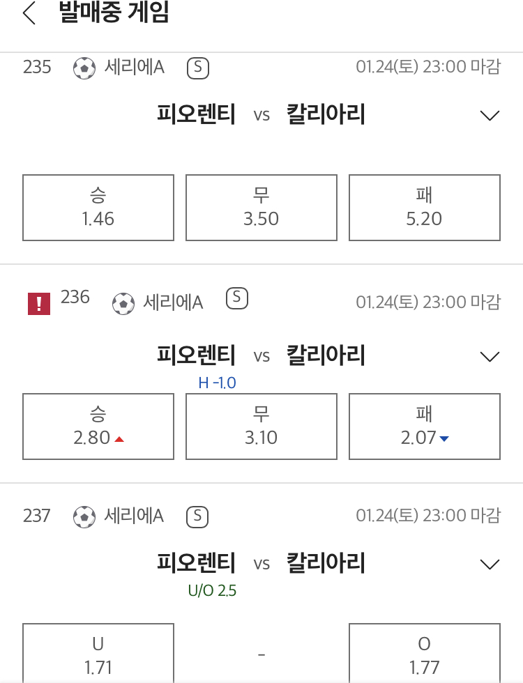 승무패 예상: 피오렌티나 승