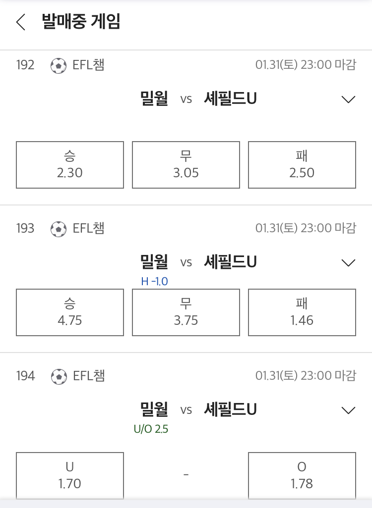 승무패 예상: 셰필드 유나이티드 승