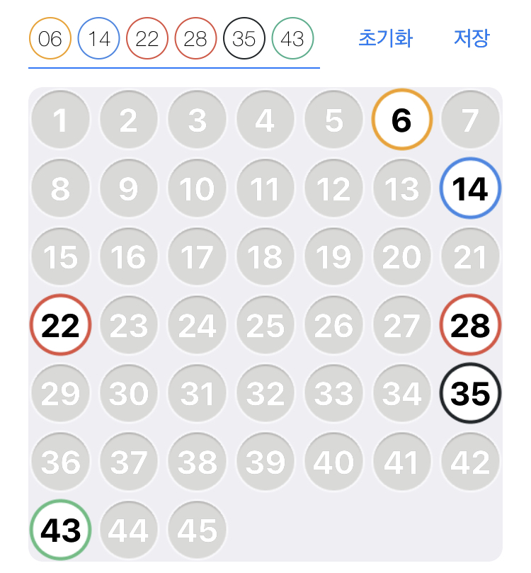 2조합: 6 · 14 · 22 · 28 · 35 · 43