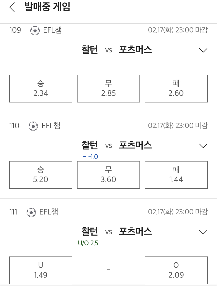 ④ 찰턴 애슬레틱 FC vs 포츠머스 FC (EFL 챔피언십 표기 경기)