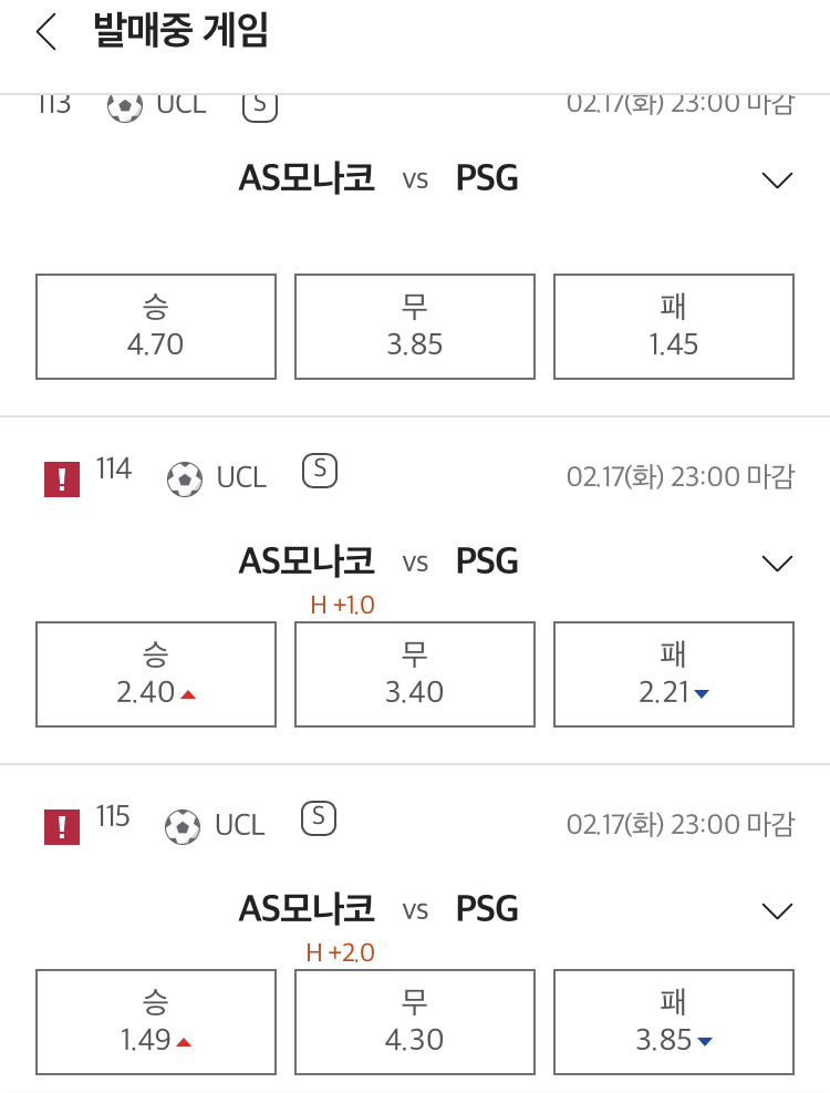 ⑤ AS 모나코 vs 파리 생제르맹 (UCL)