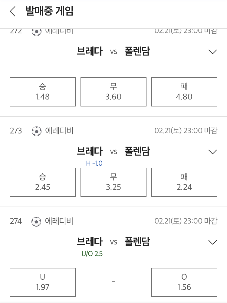 브레다는 홈에서 공격적인 운영을 펼치며 전방 압박과 빠른 전환이 강점인 팀입니다. 폴렌담은 수비 안정감이 떨어지고 원정에서 실점률이 높은 편이라 수비 부담이 큽니다. 해외 배당은 브레다 승 1.48로 우세를 분명히 하고 있으며, 오버 배당이 낮게 형성된 점은 다득점 양상을 시장이 예상하고 있다는 신호입니다. 다만 핸디캡이 균형에 가깝게 형성된 점은 두 골 차 이상 격차에 대해서는 조심스러운 시각도 존재함을 보여줍니다.
