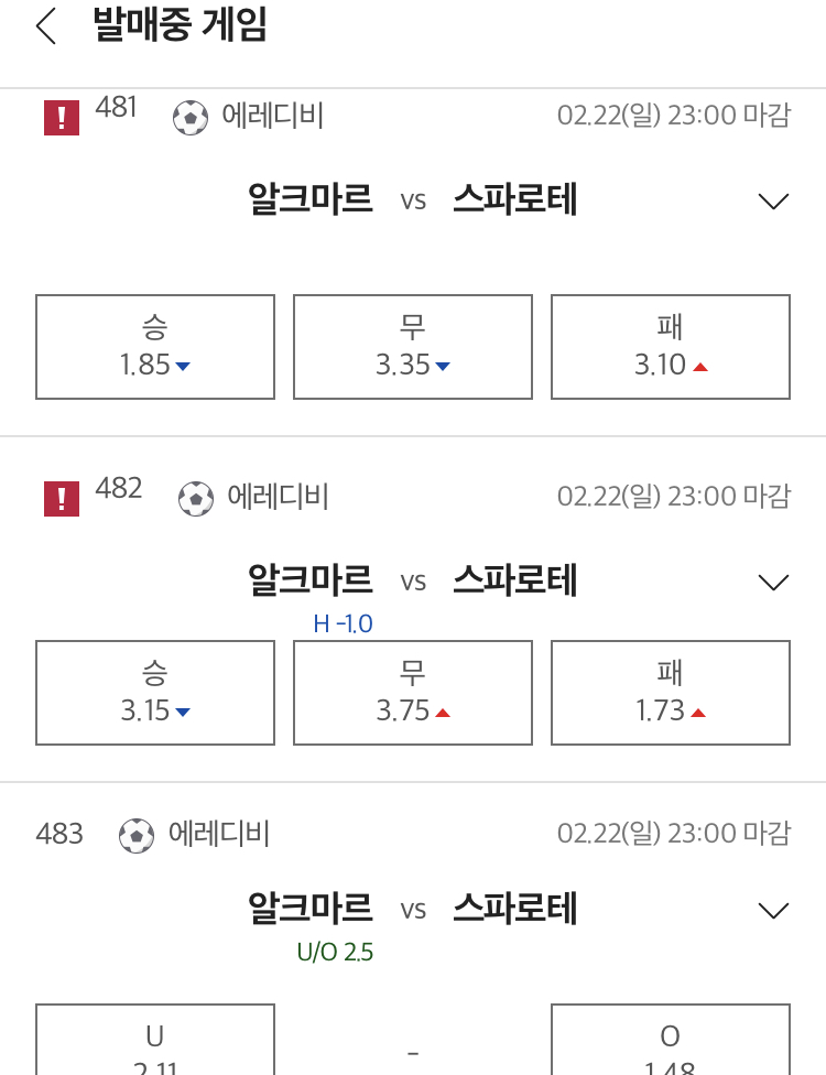 예상: 알크마르 승, 2.5오버