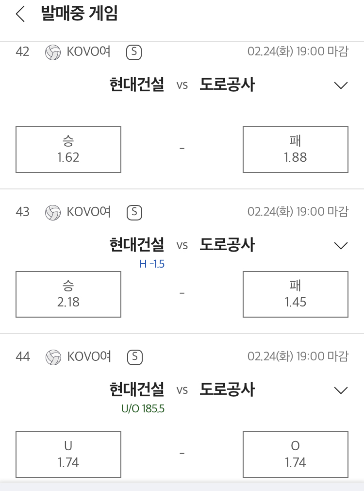 해외 흐름상 정배는 현대건설이지만 배당 차가 크지 않은 점은 시장에서도 접전을 경계하는 모습입니다. 핸디캡 -1.5 배당이 높게 형성된 것은 3-2 가능성을 열어둔 구조입니다.