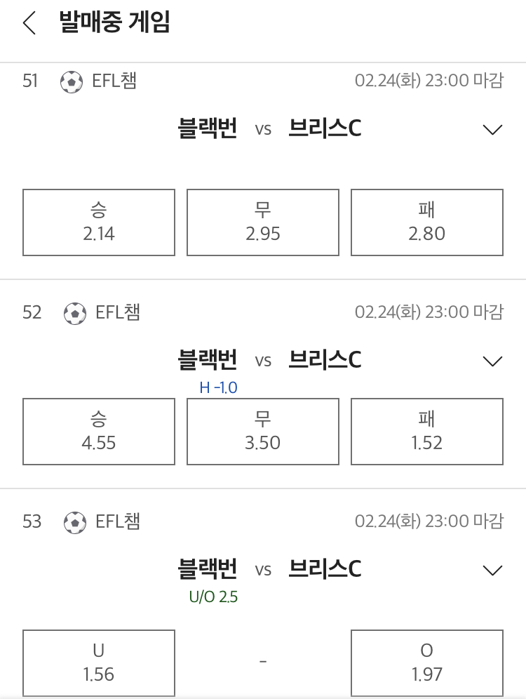해외 흐름은 블랙번 경기와 유사하게 언더 지지 성향이 강합니다. 승패 배당도 크게 벌어지지 않아 박빙 구도가 예상됩니다.