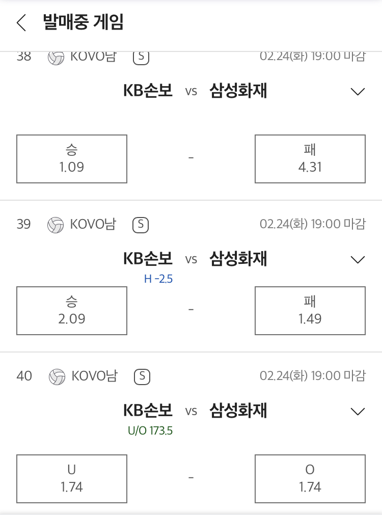 해외 배당 흐름 역시 KB손보 쪽으로 강하게 쏠려 있으며, 일반 승 1점대 초반은 사실상 전력 차를 반영한 수치입니다. 핸디캡 -2.5에서 배당이 갈리는 점을 보면 3-0 혹은 3-1 정도의 스코어 가능성을 시장은 보고 있습니다.