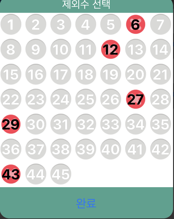 제외수 5수를 모두 배제한 상태에서 구성한 조합입니다.