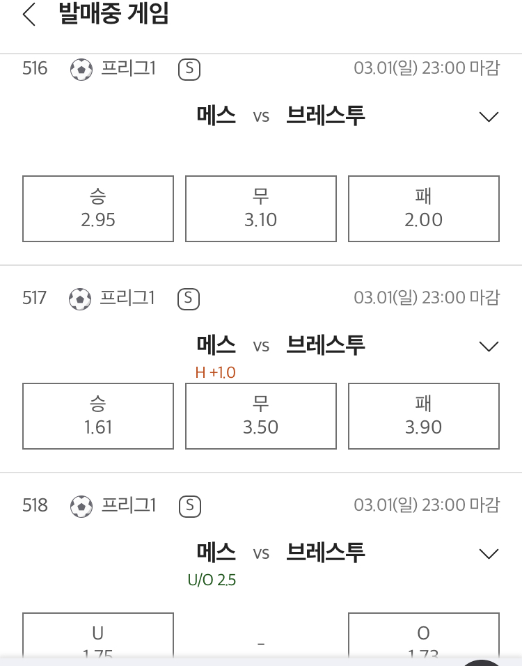 메스는 공격 전개에서 다소 기복이 있고, 선제 실점 이후 전술 전환이 원활하지 않은 특성이 있습니다. 브레스트는 원정에서도 수비 안정과 세트피스를 통한 득점 확률이 높아 효율적인 경기 운영이 돋보입니다. 해외 배당 흐름은 브레스트 우세를 반영하고 있으며, 메스에 대한 신뢰가 낮지 않다는 신호도 나타납니다. 핸디캡 구간에서 브레스트 쪽 배당 하락은 한 골 차 접전 가능성을 반영하는 흐름입니다. 언더오버 배당은 균형을 유지하고 있어 1~2골 승부를 기대하는 시장 분위기입니다.
