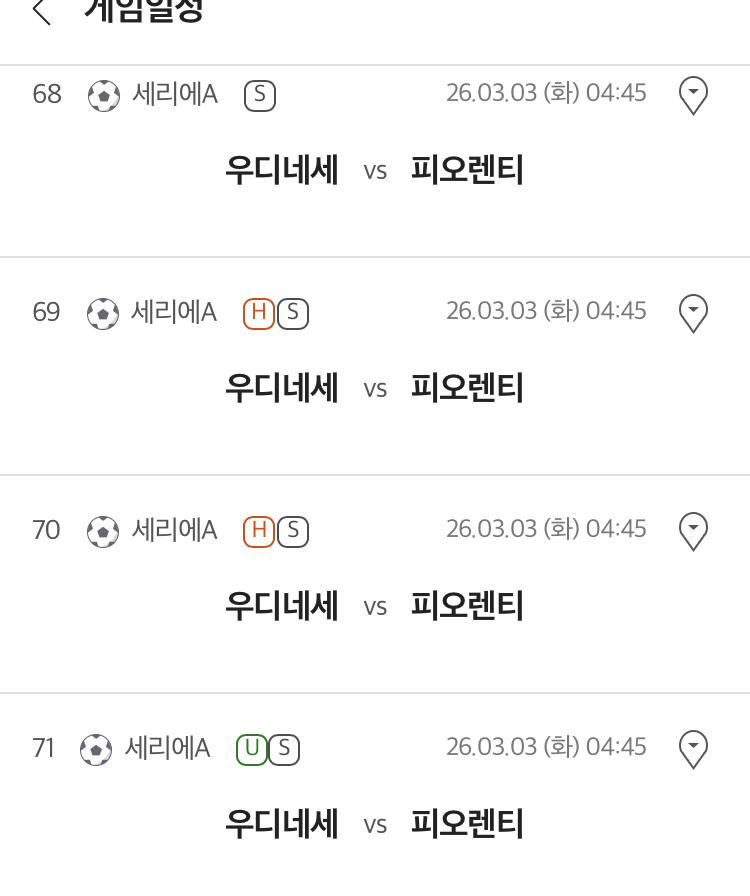 우디네세 칼초 vs ACF 피오렌티나