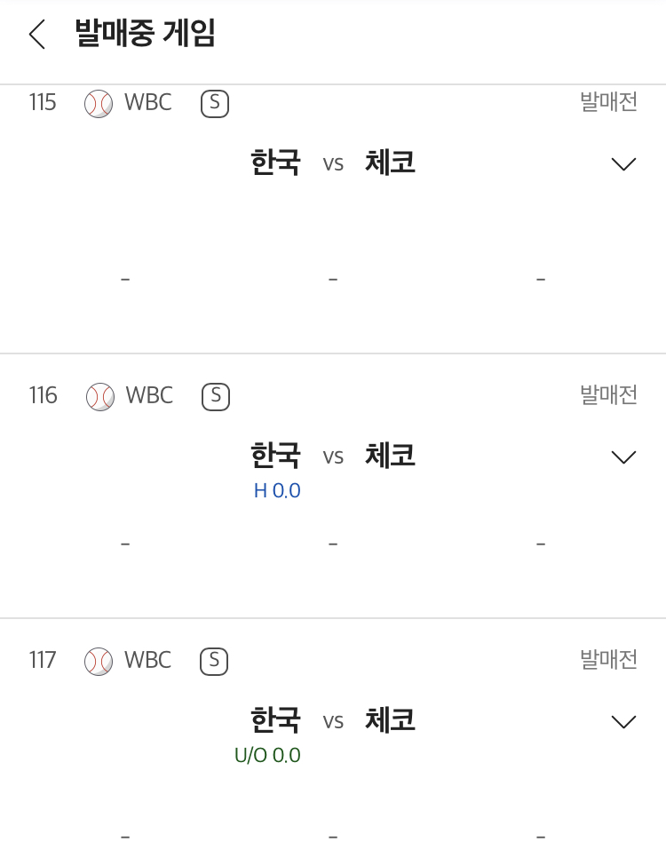 대한민국 야구 국가대표팀 vs 체코 야구 국가대표팀