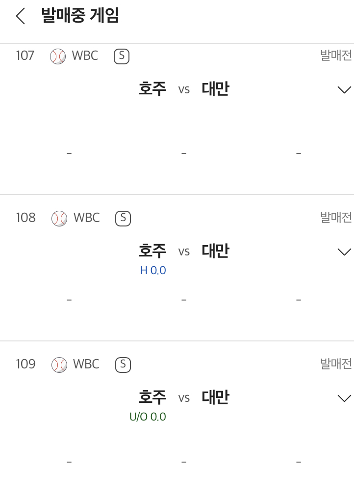 호주 야구 국가대표팀 vs 차이니스 타이베이 야구 국가대표팀