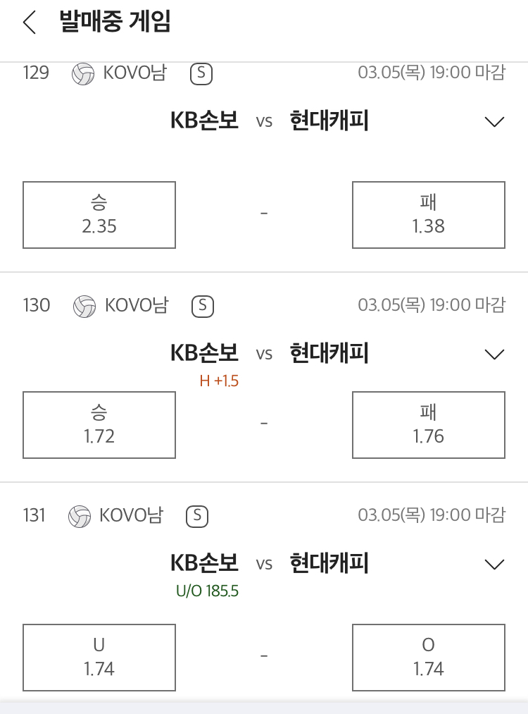 해외 흐름은 현대캐피탈 쪽으로 강하게 형성되어 있으며, 배당 역시 원정팀 우세가 분명합니다. 세트 스코어 3-0 또는 3-1 가능성을 반영한 구조입니다.