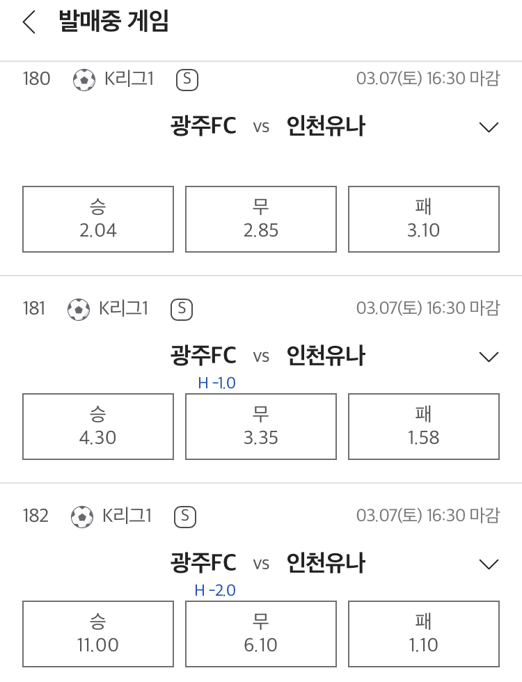 예상: 광주 승 또는 무 / 언더 2.5