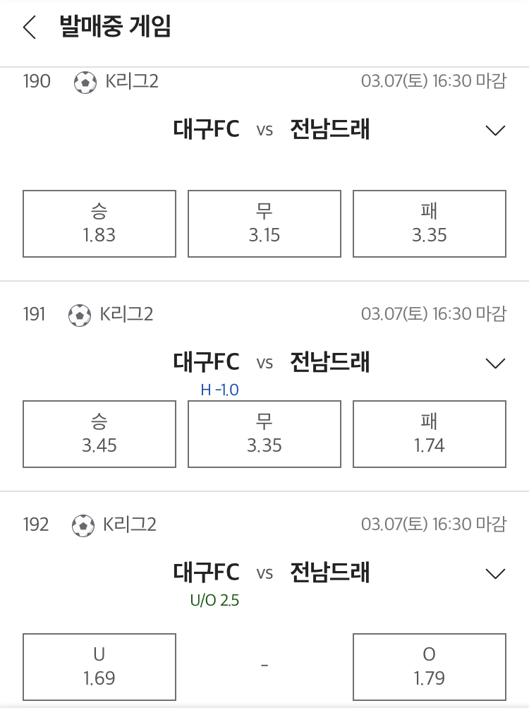 예상: 대구 승 / 언더 2.5