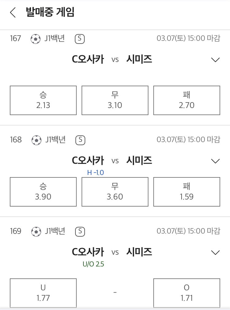 예상: 가시마 승 / 언더 2.5