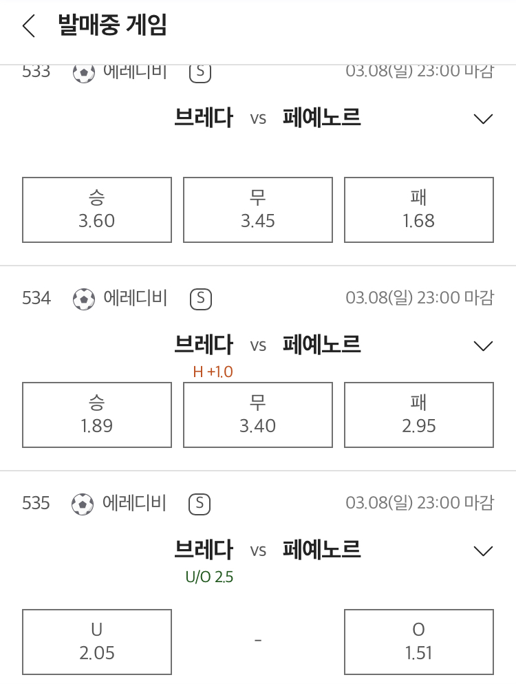 승무패 예상은 페예노르트 -1.0 마핸승이며 언더오버 예상은 오버 2.5입니다.