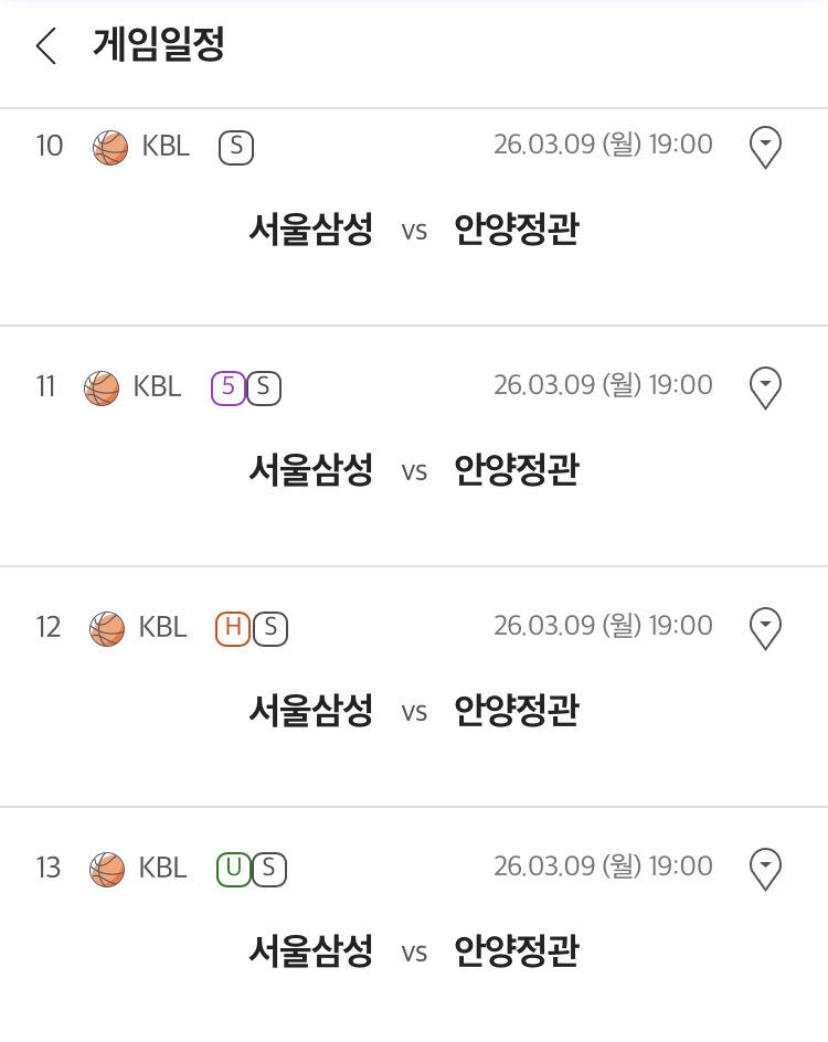 서울 삼성 vs 안양 정관장