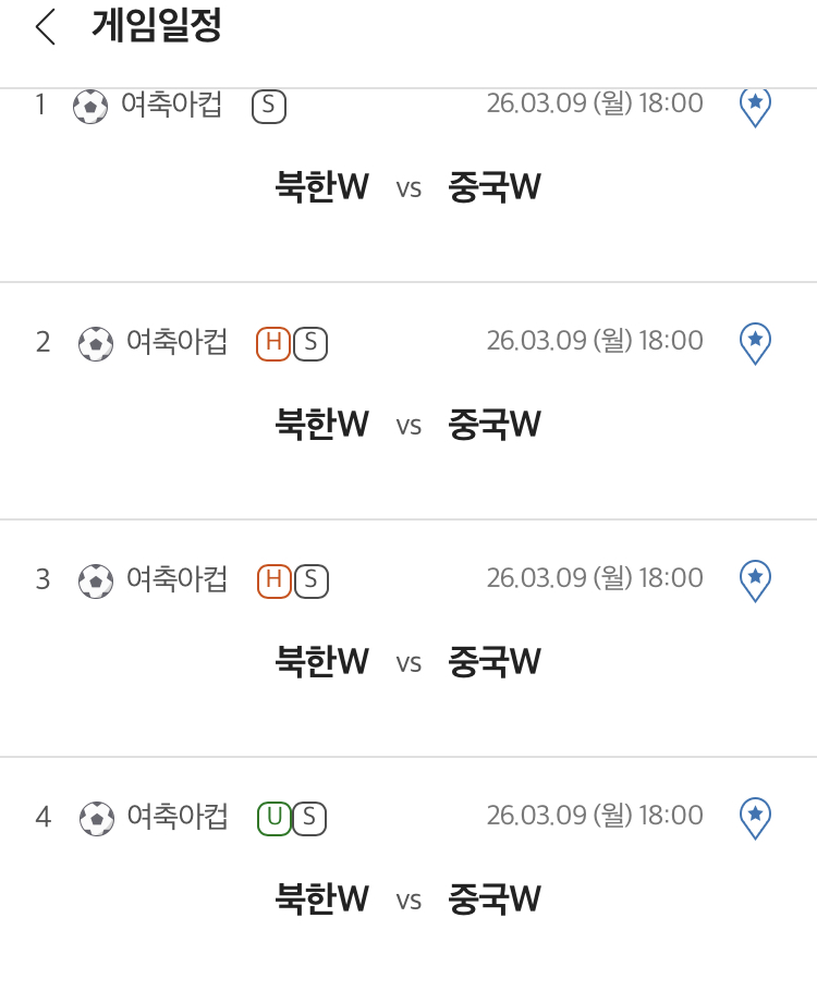 북한(W) vs 중국(W)