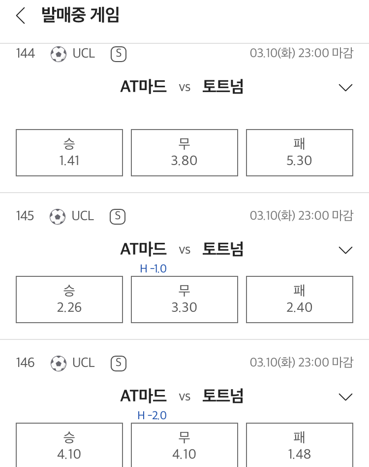 아틀레티코 마드리드 vs 토트넘