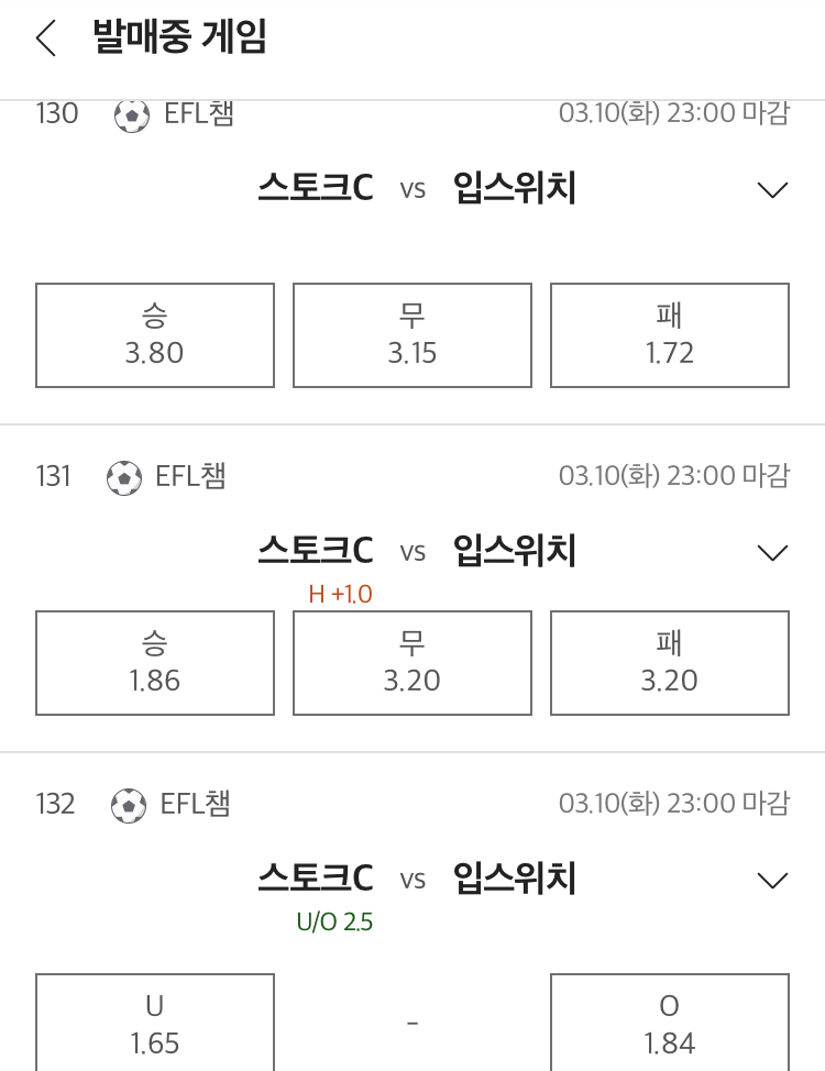 스토크 시티 vs 입스위치
