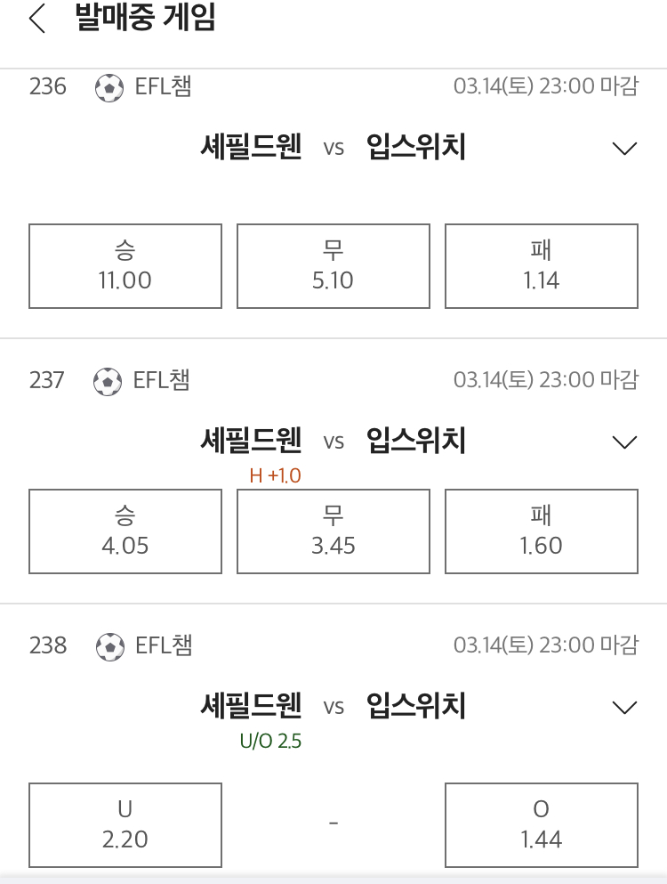 셰필드Wvs입스위치