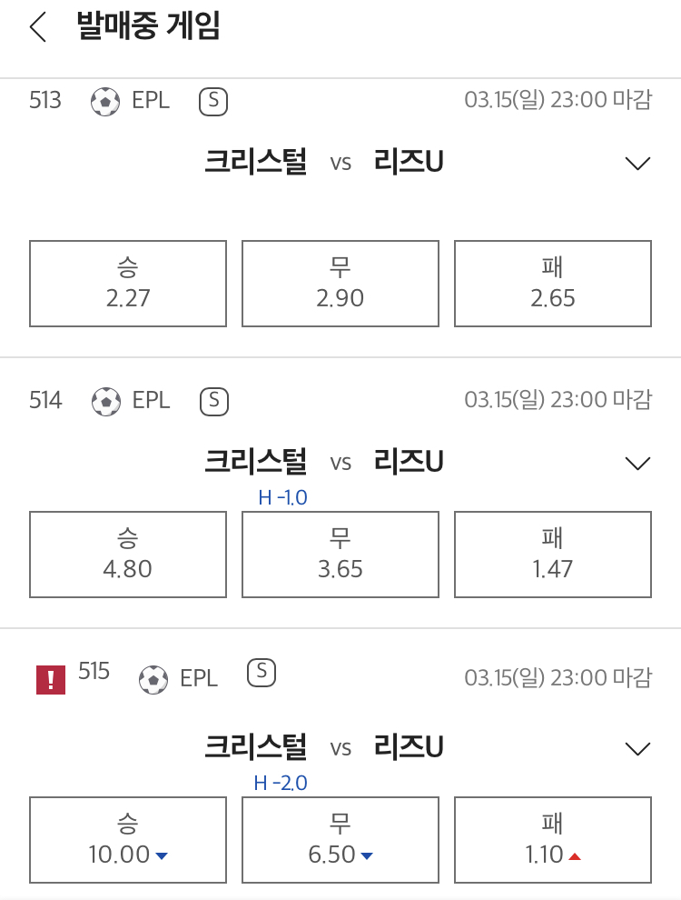 승무패 예상 : 크리스털 팰리스 승 또는 무