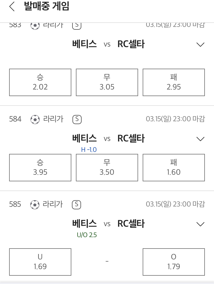 승무패 예상 : 베티스 승 또는 무