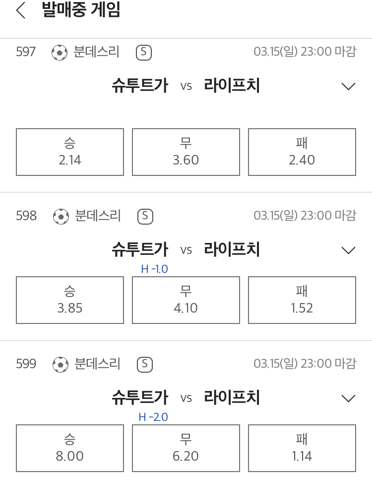 해외 배당 흐름에서는 일반 승무패 배당이 거의 비슷하게 형성되며 시장에서도 상당히 팽팽한 경기로 평가하고 있습니다. 다만 핸디캡 -1에서는 라이프치히 쪽 배당이 크게 낮게 형성되어 슈투트가르트의 큰 점수 차 승리는 어렵게 보는 흐름이 나타납니다. 언더오버 3.5에서는 배당이 거의 균형을 이루며 3골 전후 스코어 가능성이 반영된 시장 구조입니다.