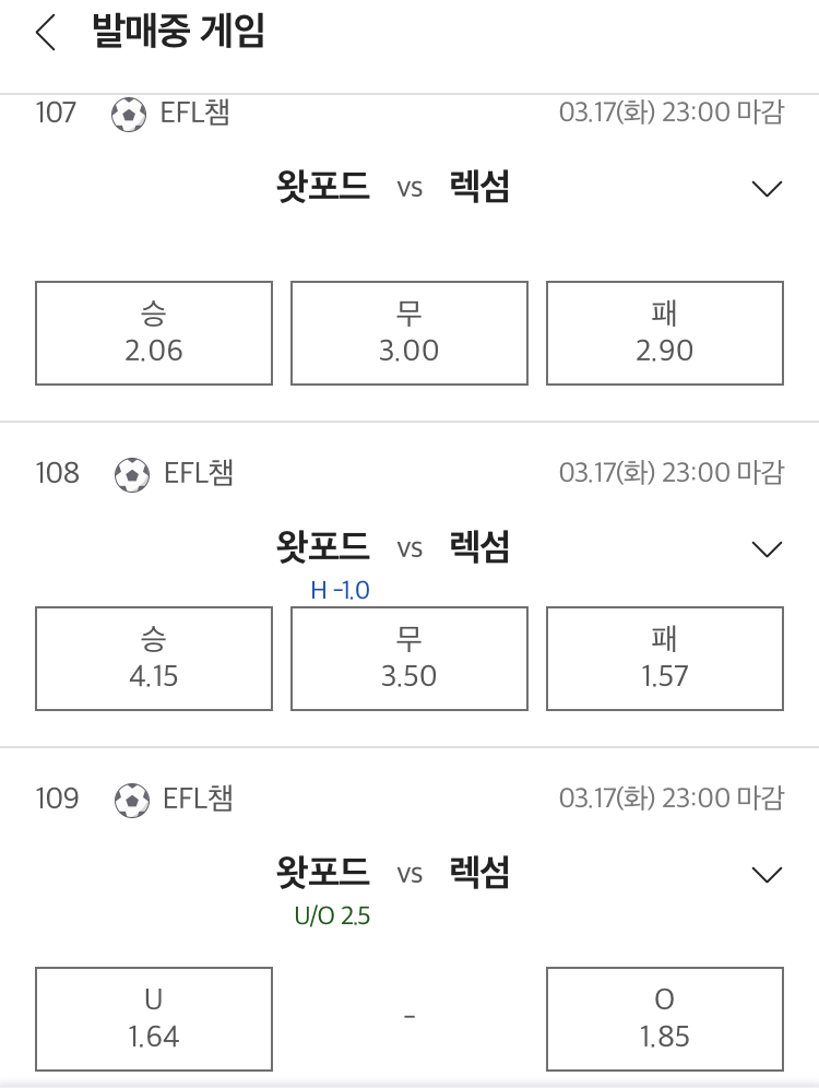 핸디캡 (-1.0 왓포드) : 렉섬 승