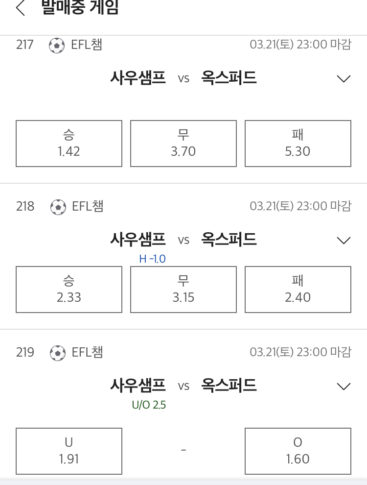 승무패: 사우샘프턴 승