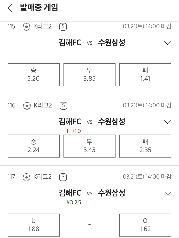 핸디캡(+1.0): 수원 삼성 승
