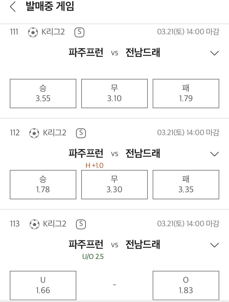 | 3월 22일 왓포드vs레스터C, 풀럼vs번리, 에스파뇰vs헤타페, F시타르타vs트벤테 승무패 (0) | 2026.03.21 |