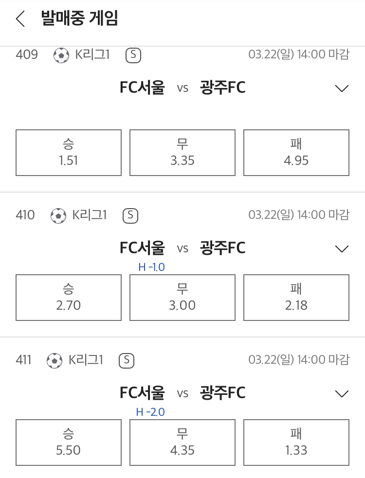 승무패는 FC서울 승, 핸디캡은 서울-1.0 승, 언더오버는 언더가 유력합니다.