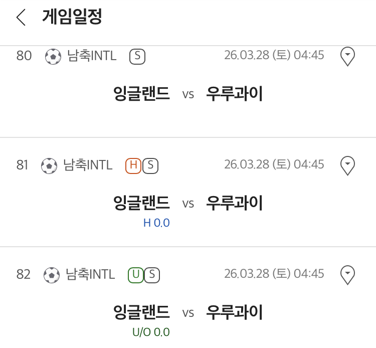 경기는 서로 강점이 뚜렷한 빅매치로 조심스러운 운영 속 접전 양상이 예상됩니다. 잉글랜드는 공격 전개와 선수층에서 우위지만, 우루과이는 수비 조직과 경기 운영 능력이 뛰어나 쉽게 무너지지 않는 팀입니다. 해외 흐름은 잉글랜드 우세 속에서도 무승부 쪽 자금이 꾸준히 유입되는 균형형 패턴입니다.