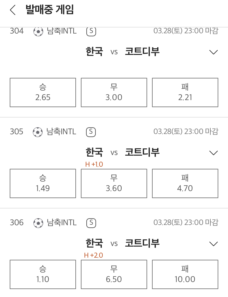 승무패는 코트디부아르 근소 우세, 핸디캡은 한국 플핸승, 언더오버는 언더가 유력합니다.