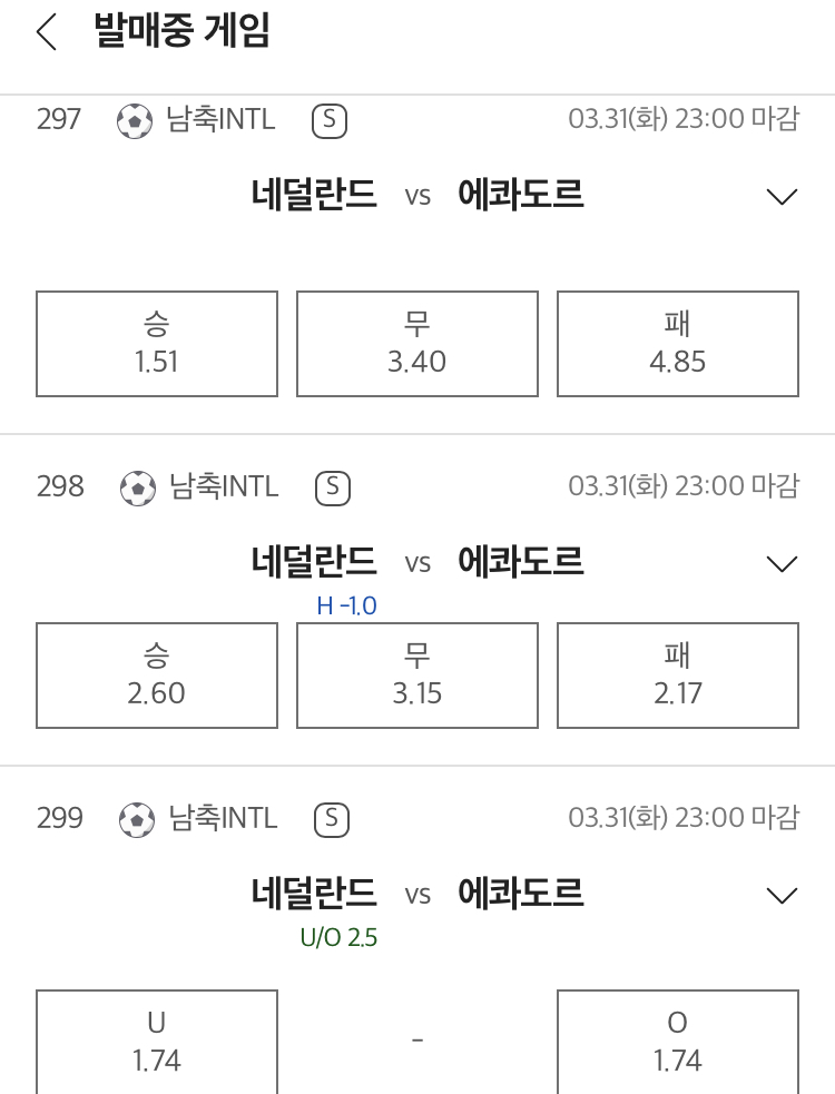 승무패 네덜란드 승, 핸디캡은 에콰도르 플러스, 언더가 유력합니다.