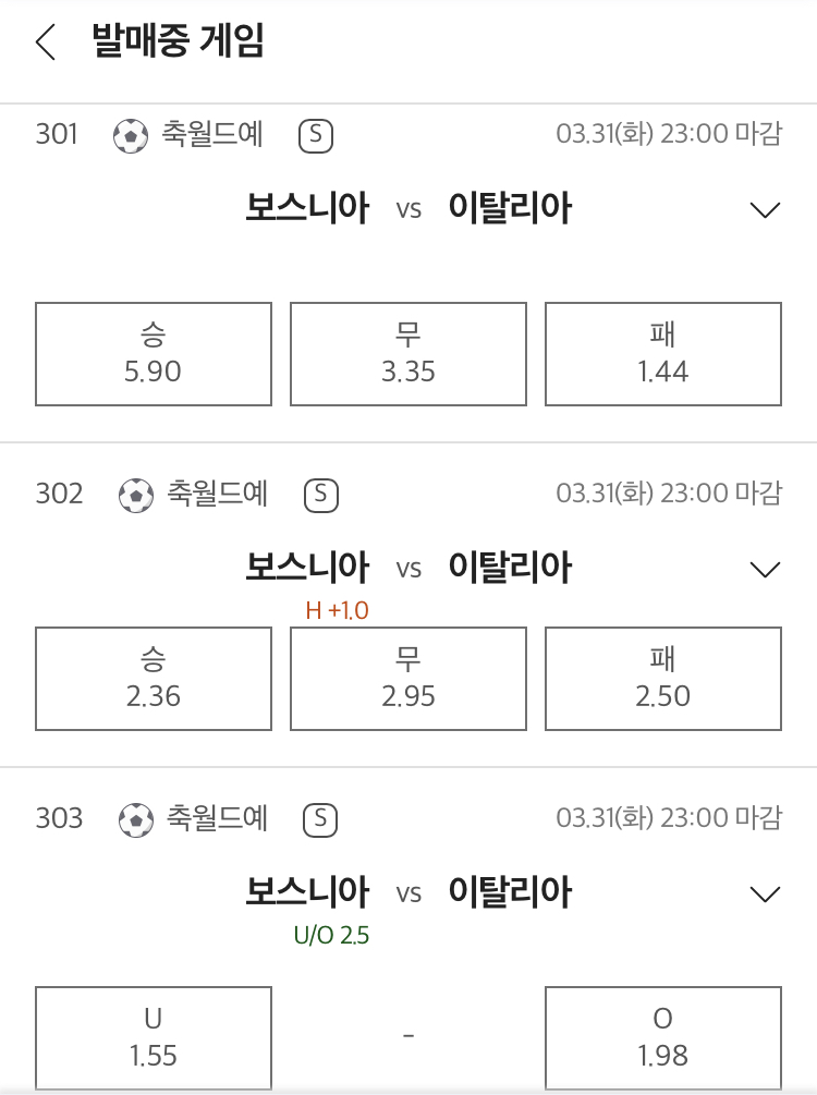 승무패 이탈리아 승, 핸디캡은 보스니아 플러스, 언더가 가장 유력합니다.