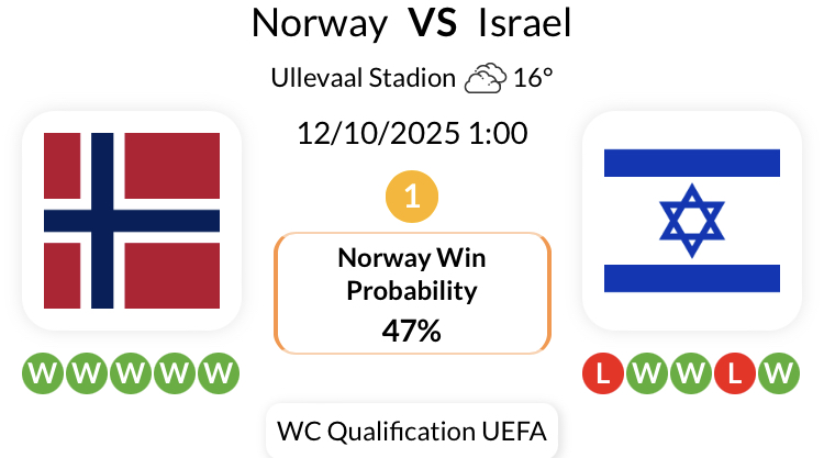 노르웨이는 지난 13번의 WC 예선 UEFA 경기 중 12경기에서 무패 행진을 이어가고 있습니다