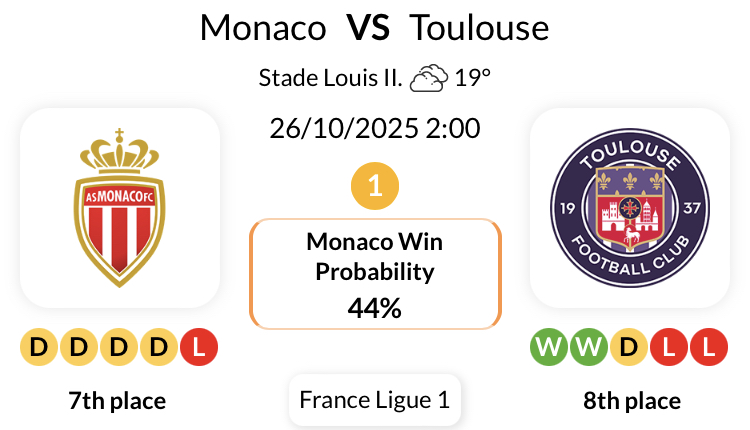모나코는 리그 1에서 툴루즈를 상대로 한 마지막 25경기 중 21경기에서 무패를 기록했습니다