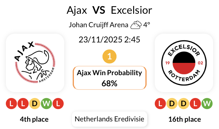 아약스는 에레디비시에서 엑셀시어와 지난 19경기 연속으로 맞붙은 경기에서 패배한 적이 없습니다